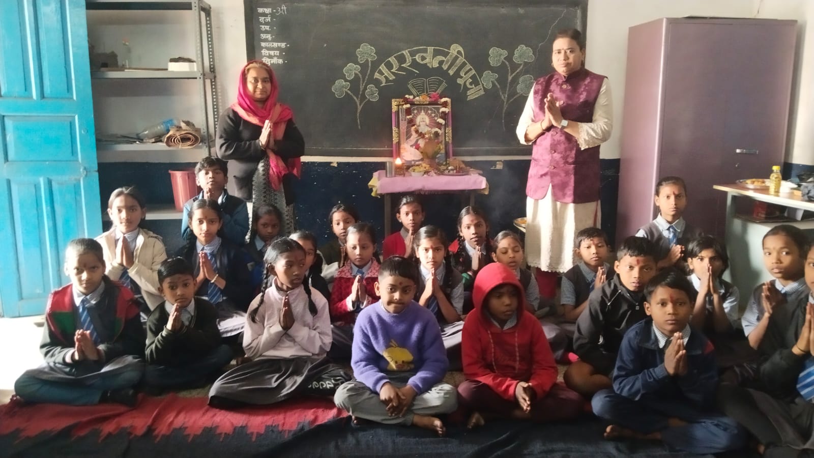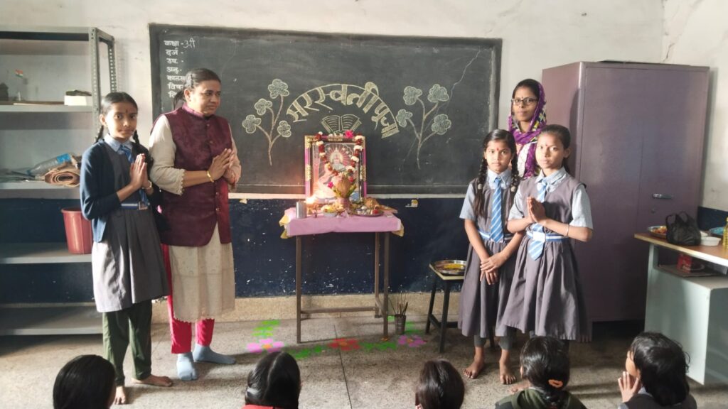 रायगढ़। राज्यपाल पुरस्कृत प्रधान पाठिका ने अपनी कविता पढ़ मां सरस्वती की पूजा -अर्चना , वंदना,शालेय शिक्षकों,स्टाफ व बच्चों के साथ मां शारदे की पूजा -अर्चना कर शाला की प्रगति , शांति सह विद्या के अधिकार हेतु प्रार्थना कर आशीर्वाद लिया।इस अवसर पर पूरा माहौल भक्तिमय हो गया।सबके चेहरे पर उत्साह झलक रहा था। पूजा पश्चात् सभी ने भोग-प्रसाद ग्रहण किया।