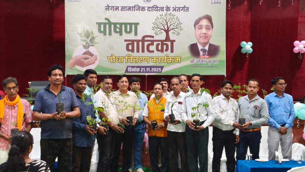 रायगढ़। एनटीपीसी लारा द्वारा नैगम सामाजिक दायित्व के अंतर्गत स्थानीय समुदाय में पोषण सुरक्षा को बढ़ावा देने और घर-घर में हरी सब्ज़ियों की उपलब्धता सुनिश्चित करने के साथ साथ बागबानी कार्य को बढ़ावा देने की उद्देश्य से किसानों को श्री अनिल कुमार, कार्यकारी निदेशक (एनटीपीसी लारा) के हाथों उन्नत किष्म के पौधा दिनांक 21 नवम्बर 2025 को वितरण किया गया। इस अवसर पर उपस्थित किसानों को संबोधित करते हुए श्री अनिल कुमार ने कहा इस पहल का उद्देश्य है की पारंपरिक कृषि के अतिरिक्त लोगों को नई कृषि प्रणाली से जागरूक करना एवं इसके माध्यम से उनका आर्थिक अभिवृद्धि सुनिश्चित करना है।