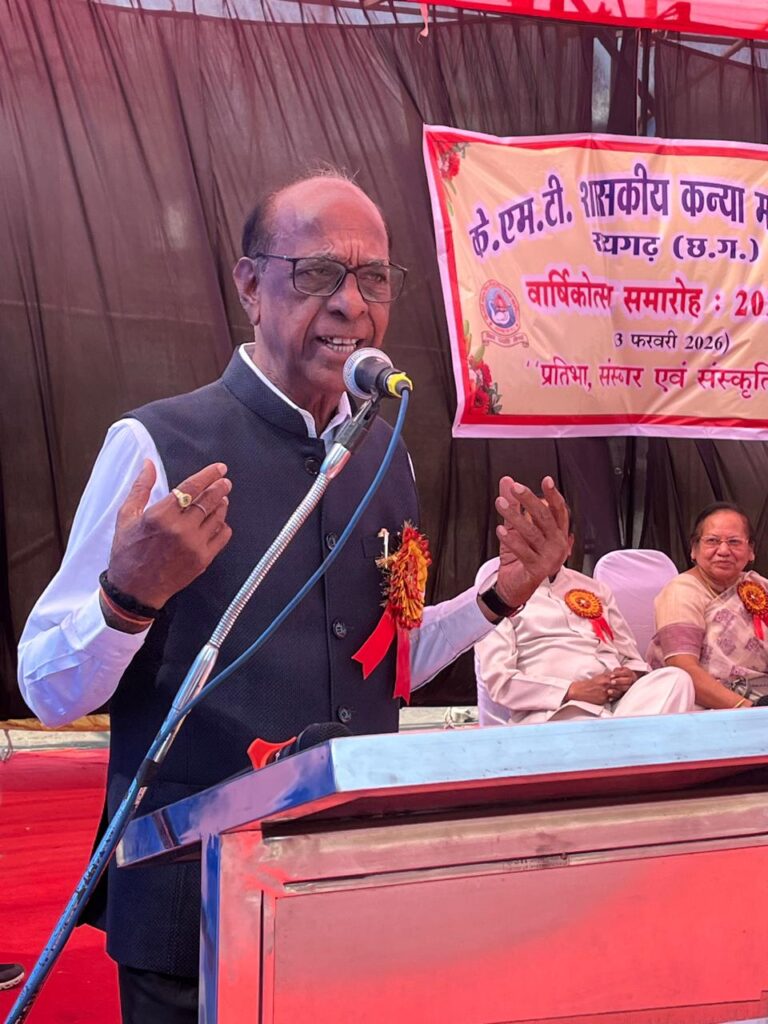 रायगढ़। रायगढ़ के किशोरी मोहन त्रिपाठी कन्या शासकीय महाविद्यालय में आयोजित वार्षिक उत्सव एवं स्नेह सम्मान समारोह में मुख्य अतिथि के रूप में पूर्व विधायक विजय अग्रवाल साम्मिलित हुए एवं विशिष्ट अतिथि रुप में पूर्व नेता प्रतिपक्ष एवं रायगढ़ नगर निगम के पार्षद श्रीमति पूनम सोलंकी एवं पूर्व नगरपलिका परिषद रायगढ अध्यक्ष श्रीमति शीला तिवारी, शासकीय पी डी कामर्स महाविधालय के पूर्व प्रचार्य प्रो. डा. एम. एस. खनुजा, पूर्व अनुविभागीय अधिकारी देवनाथ पटेल, किशोरी मोहन त्रिपाठी शासकीय कन्या महाविद्यालय के प्रभारी प्राचार्य सुश्री डा. उमा नेगी ,छात्रासंघ प्रभारी डा.सी. के. साहू शामिल हुए। वार्षिकोत्सव एवं स्नेह सम्मान समारोह का शुभारंभ पूर्व विधायक विजय अग्रवाल एवं विशिष्ट अतिथियों ने मां सरस्वती की प्रतिमा पर माल्यार्पण और दीप प्रज्जवन कर किया।