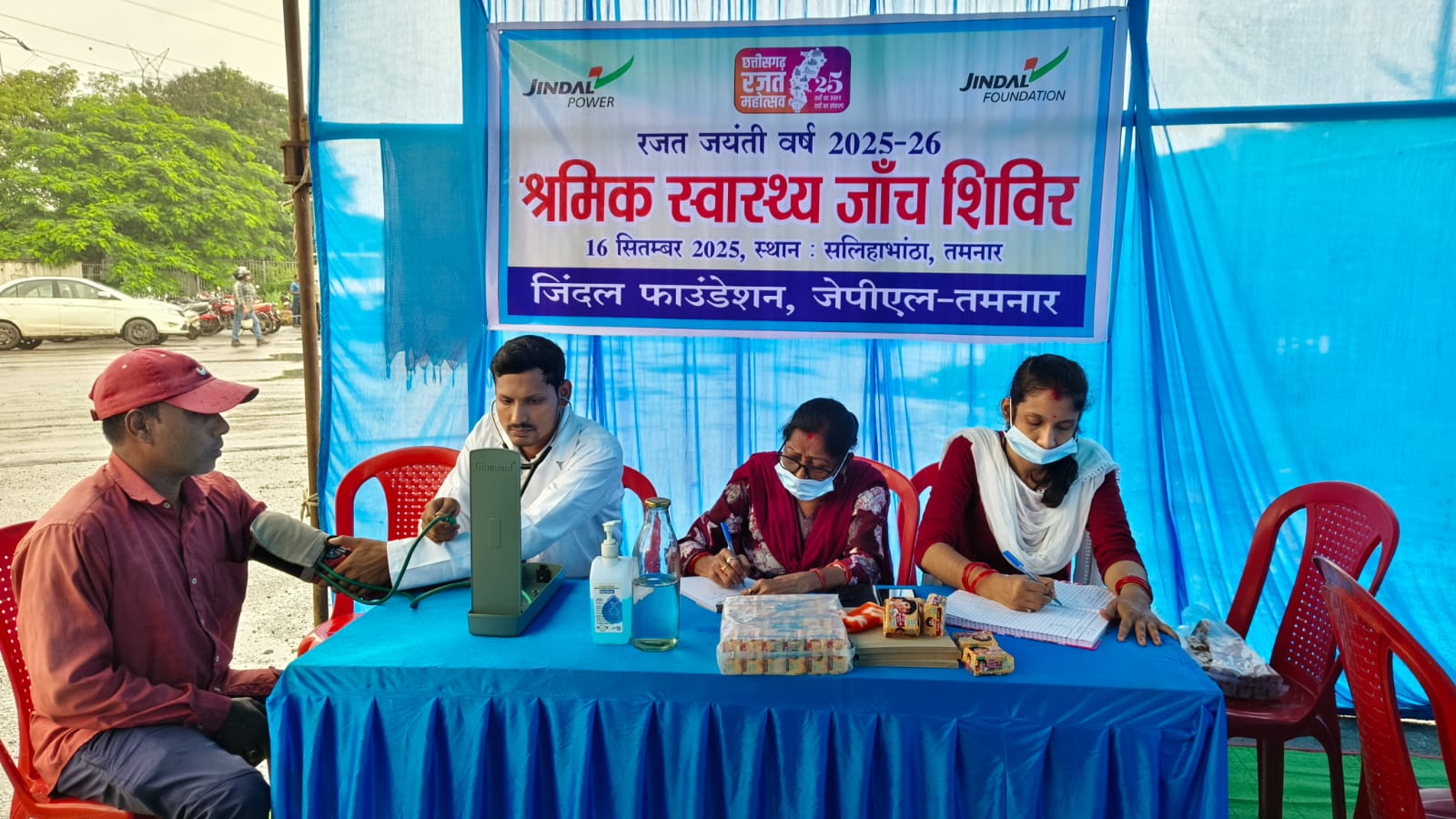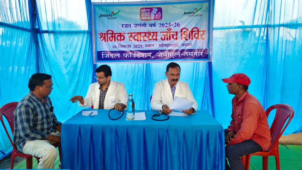 तमनार। जिंदल पावर लिमिटेड तमनार भारतवर्ष का एक अग्रणी ऊर्जा उत्पादक संस्थान होने के साथ साथ जनतिहैषी संस्थान भी है। संस्था क्षेत्र के सर्वांगीण विकास के लिए सदैव समर्पित रही है। विशेषकर शिक्षा, स्वास्थ्य व पर्यावरणीय बेहतर वातावरण निर्माण में सदैव बढ़ चढ़कर भाग लेती रही है तथा शासन के प्रत्येक योजनाओं में अपनी भूमिका का निर्वहन करती रही है। इसी क्रम में संस्थान अपने सामाजिक सरोकार निर्वहन अंतर्गत संस्थान में कार्यरत स्थानीय व अन्य राज्यों से आये श्रमिकों एवं उनके परिवारजनों के लिए बेहतर स्वास्थ्य उपलब्धता हेतु एक दिवसीय श्रमिक चिकित्सा शिविर का आयोजन सीएसआर हेल्थ संेटर में किया गया। शिविर में ओ.पी. जिंदल हास्पिटल सावित्रीनगर तमनार के वरिष्ठ विशेषज्ञ चिकित्सकों द्वारा 146 जनरल चिकित्सा, हाई ब्लड प्रेसर, शुगर, एनेमिक एचबी टेस्ट, दांत खाज खुजली एवं लाक्षणिक चिकित्सा के मरीजो का चिकित्कीय उपचार कर उन्हें आवश्यक दवाईयाॅ प्रदान की गई।