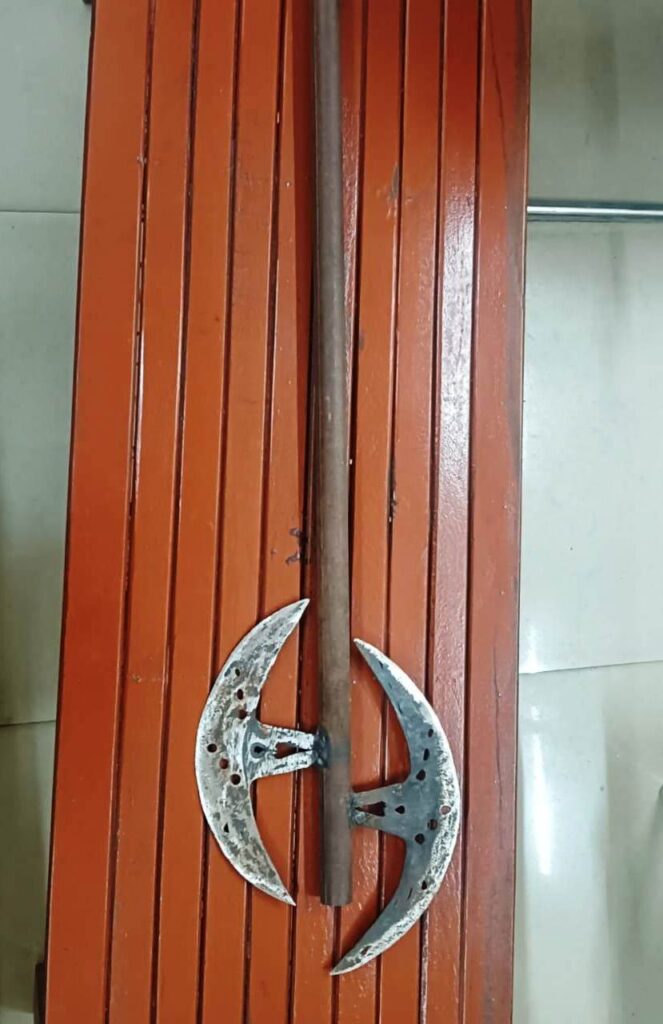 पुलिस ने पुरोहित चौहान के कब्जे से लोहे का धारदार फरसा जब्त किया और दोनों के विरुद्ध धारा 25, 27 आर्म्स एक्ट तथा 3(5) बीएनएस के तहत अपराध दर्ज कर आरोपियों को रिमांड पर भेज दिया है। कार्रवाई उप निरीक्षक गेंदलाल साहू के नेतृत्व में सहायक उप निरीक्षक आशिक रात्रे, आरक्षक अभय यादव और चंद्र कुमार बंजारे की टीम ने की।