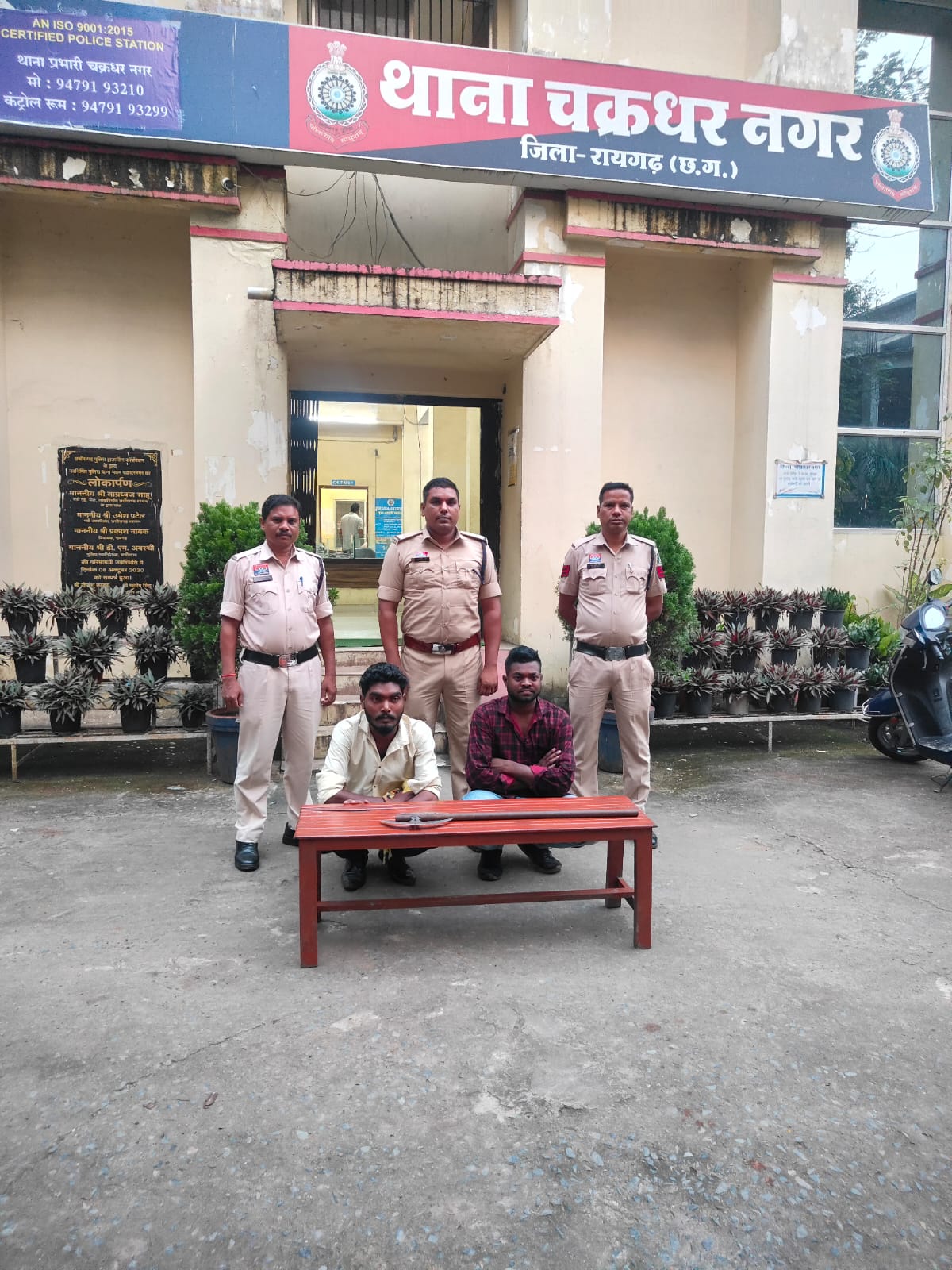 रायगढ़। चक्रधरनगर पुलिस ने 7 अक्टूबर मंगलवार शाम मानकेश्वरी मंदिर के मेला स्थल (जामगांव) में धारदार हथियार लेकर घूम रहे दो युवकों को पकड़कर जेल भेज दिया है। दोनों आरोपी फरसा लहराते हुए लोगों को भयभीत कर रहे थे, जिन पर पुलिस ने आर्म्स एक्ट की सख्त धाराओं में मामला दर्ज किया है।